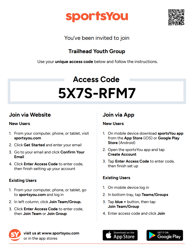 Students and Parents: Join our SportsYou group to stay informed on everything Trailhead Youth Group!